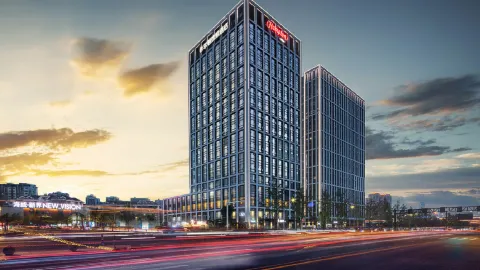 酒店坐落于杭州滨江经济开发区江南大道和西兴路叉口,比邻举世闻名的钱...